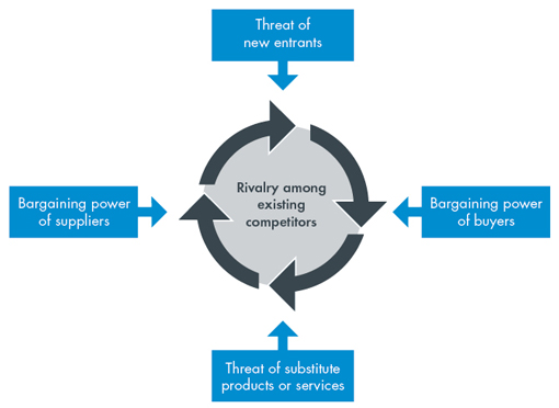 Porter’s Five Forces Model offers an innovative way to analyze the competition in any field. Developed by Michael Porter, it looks at five elements: suppliers, buyers, potential entrants, substitutes, and industry rivals.